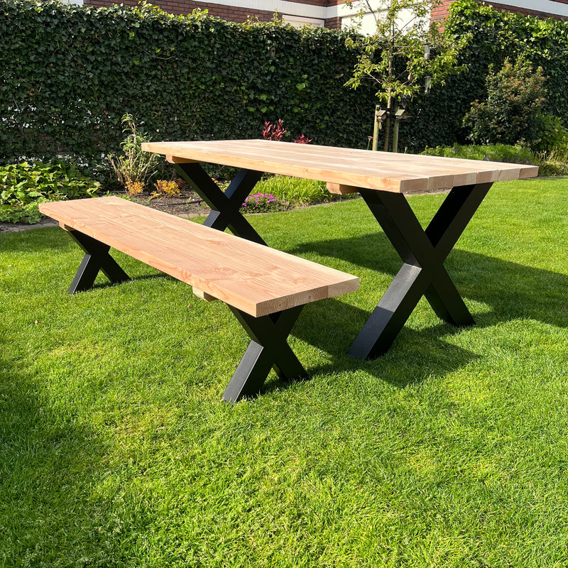 Vollständige Details anzeigenDer Gartentisch Rusto ist mit der Kombination aus Douglasienholzplatte und Stahlbeinen ein echter Hingucker. Die dicke Holzplatte und die X-Beine ...