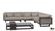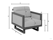 De Santorini loungeset is vervaardigd uit een strak, vierkant aluminium buisframe, gepoedercoat in een stijlvolle taupekleur. De decoratieve panelen in de armen en rug, omwikkeld met gemêleerd rope, geven de set een luchtige en eigentijdse uitstraling.
