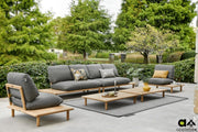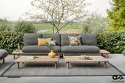 Met de Sling kun je out-of-the-box denken. Stel je voor: een indrukwekkende 6-persoonsbank van bijna 5 meter lang, eenvoudig te realiseren door twee grote banken aan elkaar te koppelen. Of je nu kiest voor een traditionele opstelling, een hoekopstelling of een unieke face-to-face opstelling, deze moduleset biedt talloze mogelijkheden om je buitenruimte naar eigen wens in te richten.