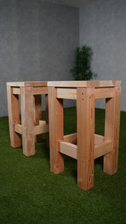 Der Stando Barhocker ist ein robuster Barhocker. Seine dicken, stabilen Douglasienholzbalken machen ihn widerstandsfähig und langlebig. Dadurch eignet er sich ideal für Restaurants und Bars, sieht aber auch im Garten toll aus. Die Sitzfläche ist 45 mm dick, und die Beine bestehen aus 10 x 10 cm starken Balken.