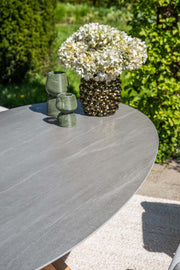 Centostone® staat bekend om zijn duurzaamheid en veelzijdigheid. Het materiaal is bestand tegen krassen en hitte en neemt geen vocht op, waardoor kringen en vlekken worden voorkomen. Daarnaast is het tafelblad eenvoudig schoon te maken. Door het gebruik van grotendeels natuurlijke materialen en een energiezuinig productieproces is Centostone® bovendien een milieuvriendelijke keuze. Dit materiaal wordt exclusief toegepast binnen de collectie van Garden Impressions.
