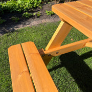 Unsere Picknicktische sind robust und bis zu 1000 kg belastbar! Das Holz ist extra dick, ca. 4 cm. Die glatten Bretter und abgerundeten Ecken machen den Tisch benutzerfreundlich und auch für Kinder geeignet. Bei Nichtgebrauch lassen sich die Bänke zusammenklappen. Die Bretter sind gerillt, um ein Verziehen zu verhindern.
