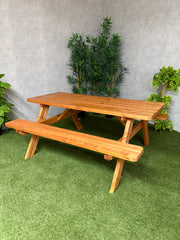 Unser 200 cm langer, imprägnierter DeLuxe-Picknicktisch ist etwas länger als unsere Standardversion (200 cm). Dadurch eignet er sich ideal, wenn Sie etwas mehr Platz benötigen. Dieser Tisch ähnelt unserem DeLuxe-Picknicktisch. Der Unterschied liegt in der attraktiven Douglasienfarbe.