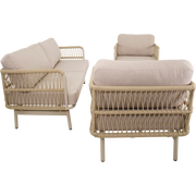 Deze Loungeset Akiro levert comfortabele, veelzijdige zitmogelijkheden en een onderhoudsvriendelijke ervaring voor dagelijks gebruik. De combinatie van een lichtgewicht maar stevige aluminium constructie met een warme beige esthetiek past bij diverse buitenruimtes en tuinstijlen.