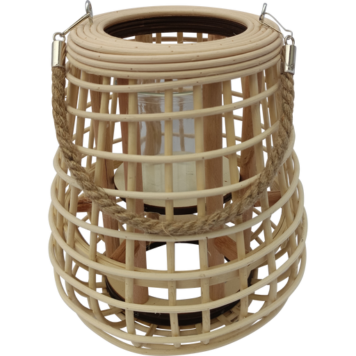 Lesli LivingØ22x24cm | Wood with jute with glass candle holder | Natural brown