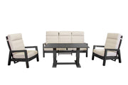 De bijbehorende salontafel (140 x 80 cm) is in hoogte verstelbaar van 51 tot 69 cm. Hierdoor kun je de set gebruiken om heerlijk te loungen of comfortabel te dineren, afhankelijk van het moment en je wensen.