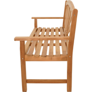 Deze teakbank biedt een natuurlijke, warme uitstraling die direct karakter geeft aan je buitenruimte. Dankzij het grote zitvlak haal je zonder moeite twee tot drie personen comfortabel samen; perfect voor lange gesprekken, borrels of familiebijeenkomsten in de buitenlucht.