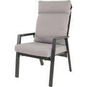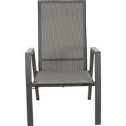 • Zitting: Textilene 4×4 patroon in zwart/grijs