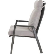 De combinatie van een lichtgewicht, stevig aluminium frame en een duurzame Textilene zitting biedt een stabiele en langdurige zitoplossing. Het 4×4 Textilene zitvlak biedt ondersteuning en ademend comfort, terwijl het olefin kussen van 270 g/m² voor extra zachtheid zorgt tijdens langere zitperiodes.