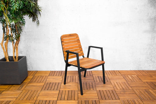 Aluminium frame powdercoated black color/acacia hardhout ; Lengte: 90cm; Breedte: 90cm; Hoogte: 76cm