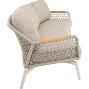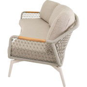 Deze loungebank combineert stabiliteit met een uitnodigende zitervaring. Het aluminium frame zorgt voor een lichte maar stevige constructie die bestand is tegen dagelijkse buitenomstandigheden, terwijl de teak armleuningen warmte en organische schoonheid toevoegen. De beige touwaccenten geven een ontspannen, mediterrane sfeer aan elke buitenruimte. Met olefin kussens die kleurvast en onderhoudsarm zijn, blijft de bank er langer zoals nieuw uit, zelfs bij regelmatig gebruik.