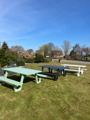 Breng comfort en stijl naar je buitenruimte met Picknicktafel London in groen โ een perfecte mix van design, duurzaamheid en functionaliteit!