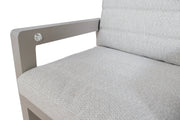 • Kussens: All-weather zandkleurige kussens met waterafstotende binnencoating, geschikt om buiten te laten liggen