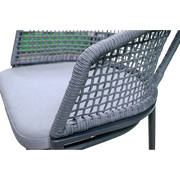 56x62x77cm | Aluminium frame matt anthracite | Ø4mm rope color dark grey | 270gr∕m² olefin cushion | Max. carryweight: 120kg