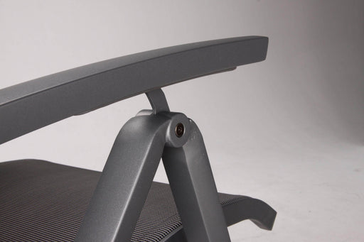 Het frame; inclusief de armleuningen en scharnieren; is volledig gemaakt van aluminium. Hierdoor is de stoel helemaal weer- en roestbestendig en ee...