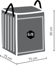 Praktische und handliche leichte Schutzhülle aus Polyestergewebe (100 % Polyester) mit witterungsbeständiger Beschichtung in Hellgrau. Jede einzelne Schutzhülle enthält eine Aufbewahrungstasche mit Tragegriff. Kann für Loungekissen verwendet werden. Abmessungen: 75 x 75 x 90 cm
