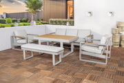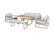 De Mondeo loungeset combineert stijl, comfort en functionaliteit in één complete set. Perfect voor ieder tuinterras, waarbij gezellig loungen en dineren moeiteloos samenkomen.