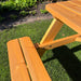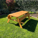 Dieser Picknicktisch besteht aus druckimprägniertem europäischem Kiefernholz, das Sonne, Regen, Wind und Sturm standhält; kurz gesagt: wetterfest! Dadurch eignet sich der Tisch perfekt für den Außenbereich und bietet ein angenehmes Sitzgefühl in den wunderschönen Frühlings- und Sommermonaten.