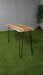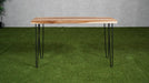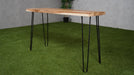 Het hardhouten blad straalt warmte en karakter uit, met unieke houtnerfpatronen die elk exemplaar bijzonder maken. Het natuurlijke kleurpalet sluit naadloos aan bij uiteenlopende interieurstijlen — van modern tot landelijk — en voegt een subtiel rustiek element toe. De metalen poten zorgen voor een stevige, stabiele basis en vormen tegelijkertijd een mooi contrast met het warme hout, wat het geheel visueel extra kracht geeft.